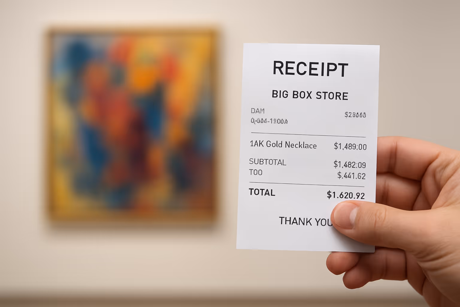 The biggest limitation of a receipt is that it only proves historical purchase price, not current value. This becomes a problem in several key scenarios. For items that appreciate over time—like art, antiques, or collectibles—the receipt understates current value. It also fails to establish an item’s condition at the time of loss. Finally, many valuable items, such as inherited property or gifts, lack receipts entirely, making it necessary to establish value through other means.