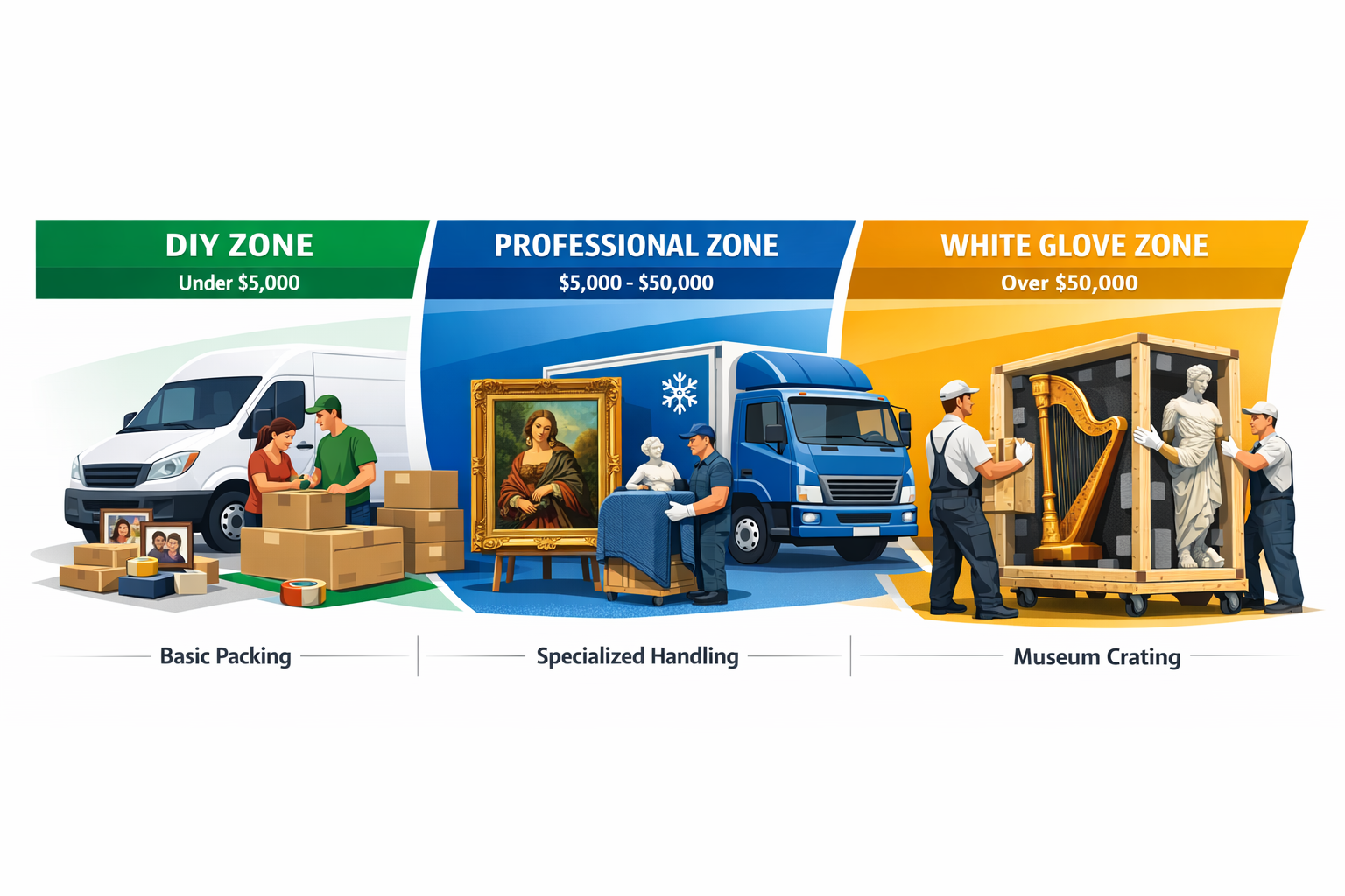 Critical Insight: Minor painting damage costs $800-$1,000 to repair, while major restoration reaches $10,000-$15,000, making professional packing services a wise investment.