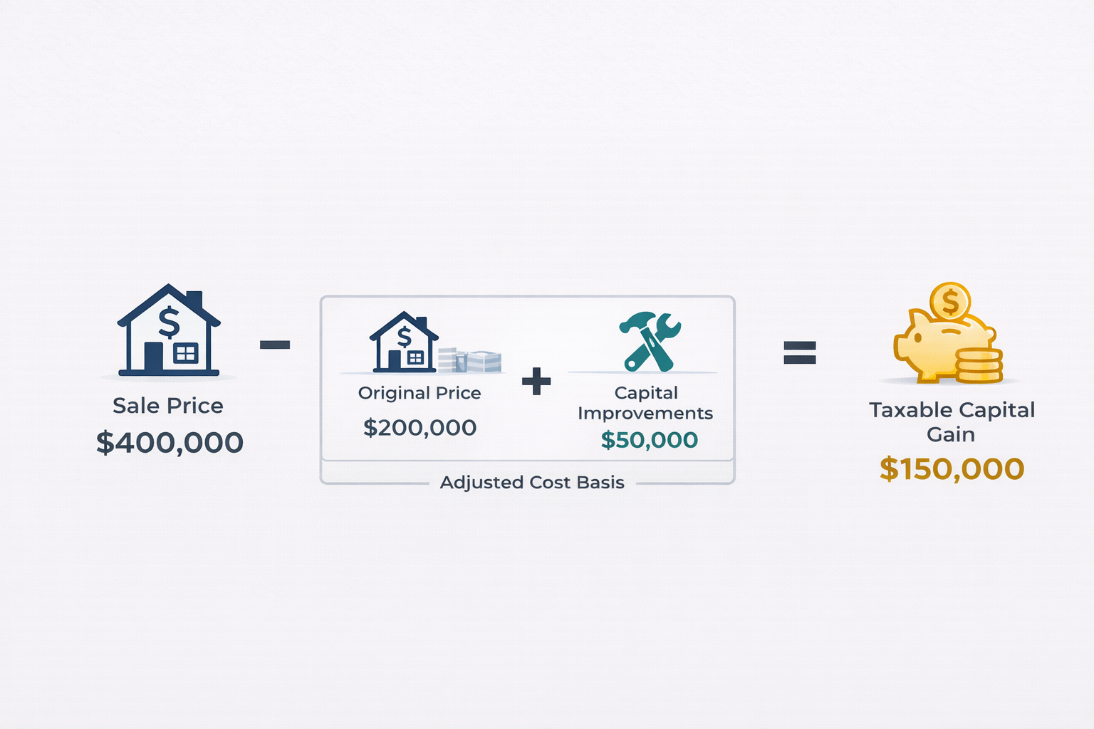 Capital gains tax is a federal tax on the profit realized when you sell an asset for more than you paid for it. The IRS defines your capital gain as the difference between the sale price and your adjusted cost basis; the original purchase price plus the cost of qualifying improvements and certain expenses. For example, if you bought a rental property for $200,000, invested $50,000 in renovations, and sold it for $400,000, your capital gain would be $150,000 ($400,000 sale price minus your $250,000 adjusted basis).